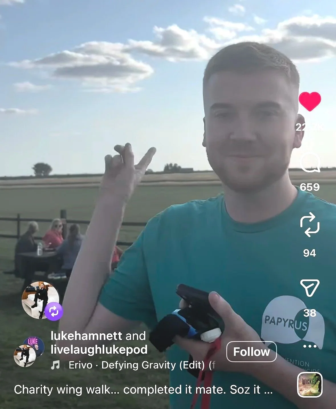 Luke successfully raised over £6k for Papyrus Prevention of Young Suicide by wing walking with us in Summer 2025